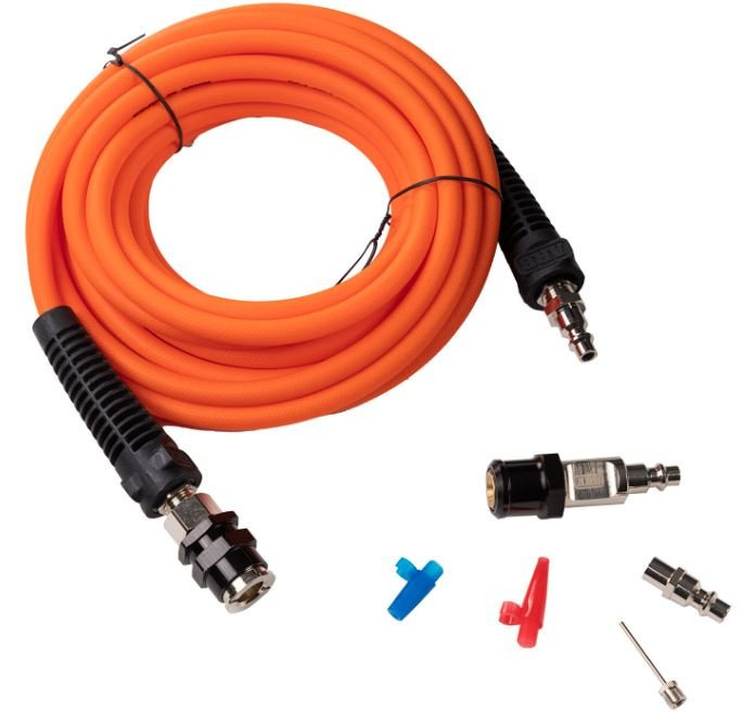 Vysokoteplotní vzduchová hadice (vyrobeno v Japonsku) s US rychlospojkami, délka 7 m a jmenovitá do 150 psi (10 bar)