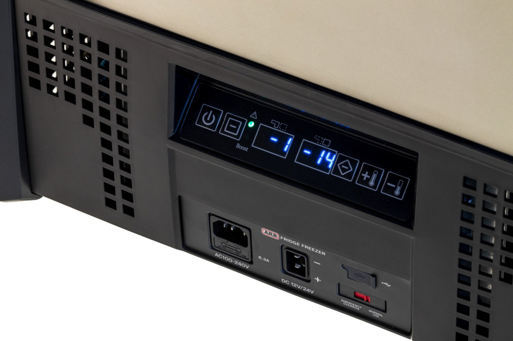 - Pohodlná zásuvka USB 5V, s výstupem 3000mA pro dobíjení mobilních telefonů a obdobných zařízení (lednice musí být připojená ke zdroji napájení 12V, 24V nebo 230 V)
