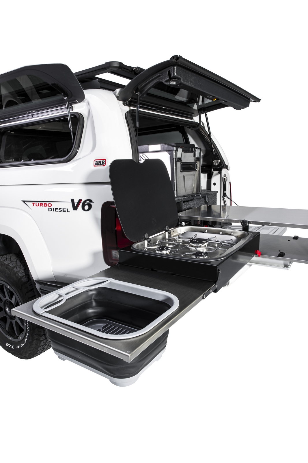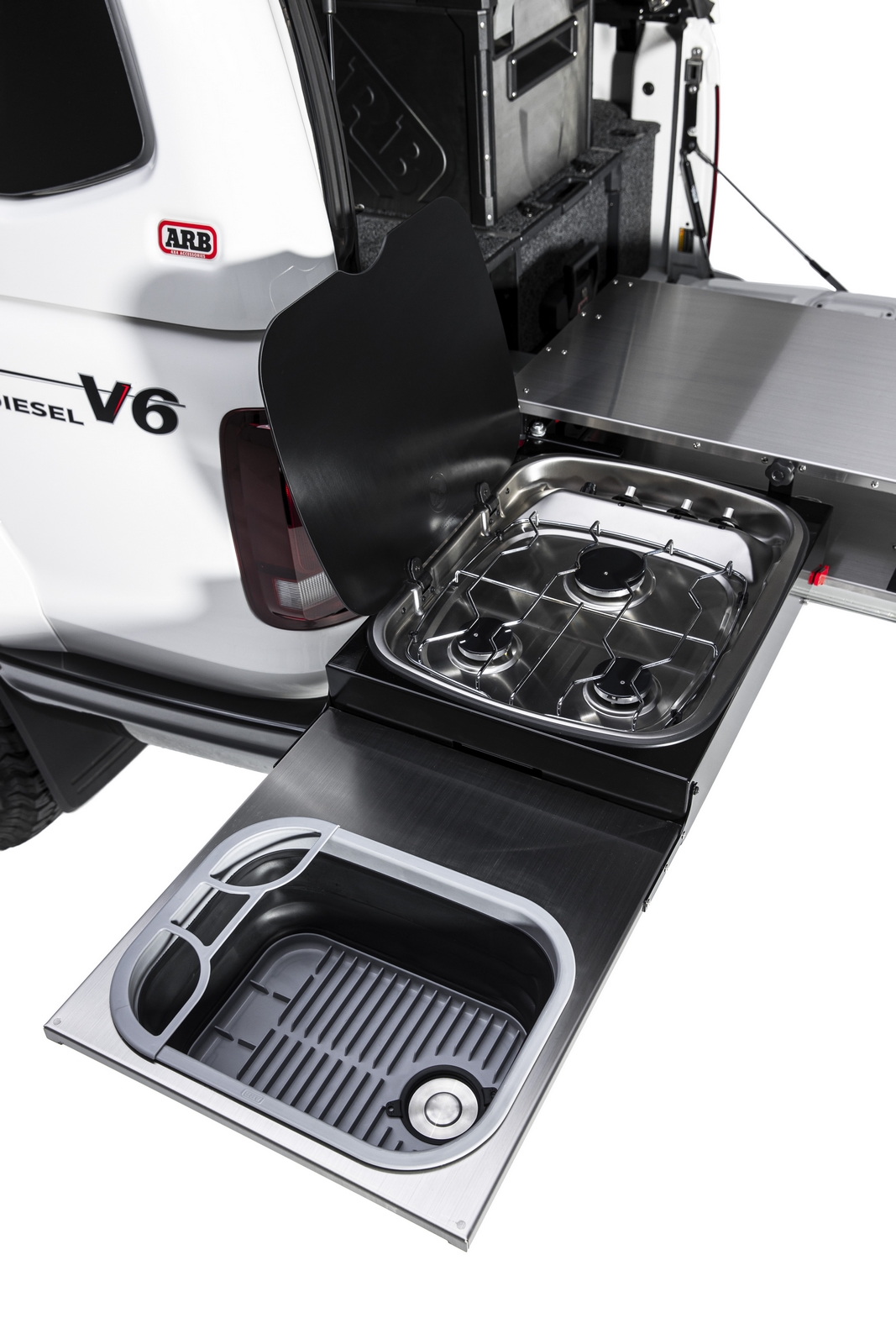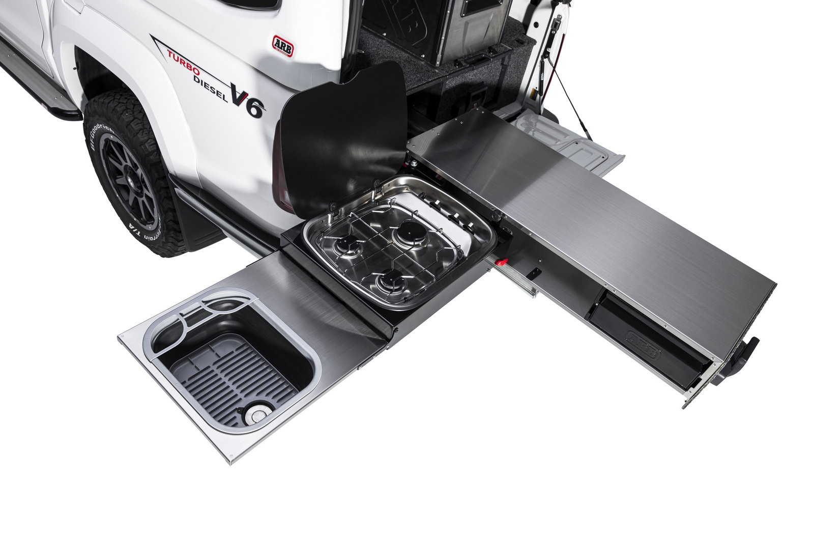 ARB Slide Kitchen - výsuvná kuchyně ARB je dokonalým doplněním nabídky zásuvkového systému ARB. Stačí pár vteřin a je možné si připravit oblibené jidlo na expedici, při práci prostě kdekoliv a kdykoliv.