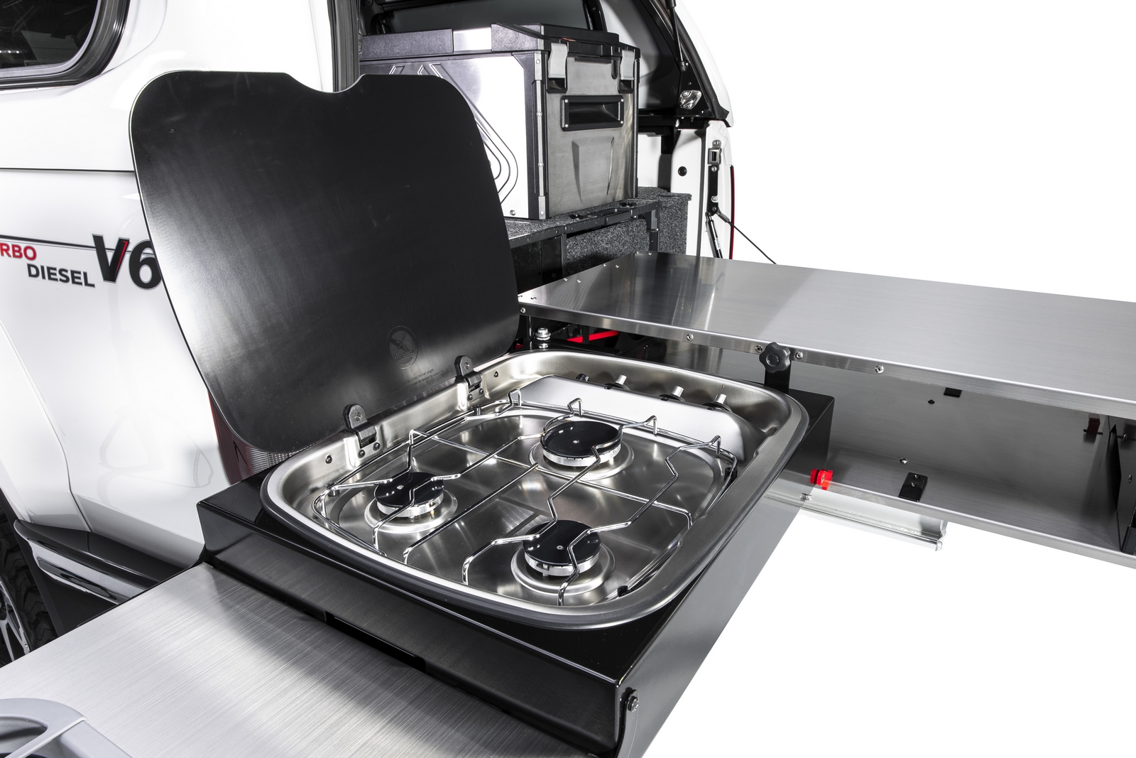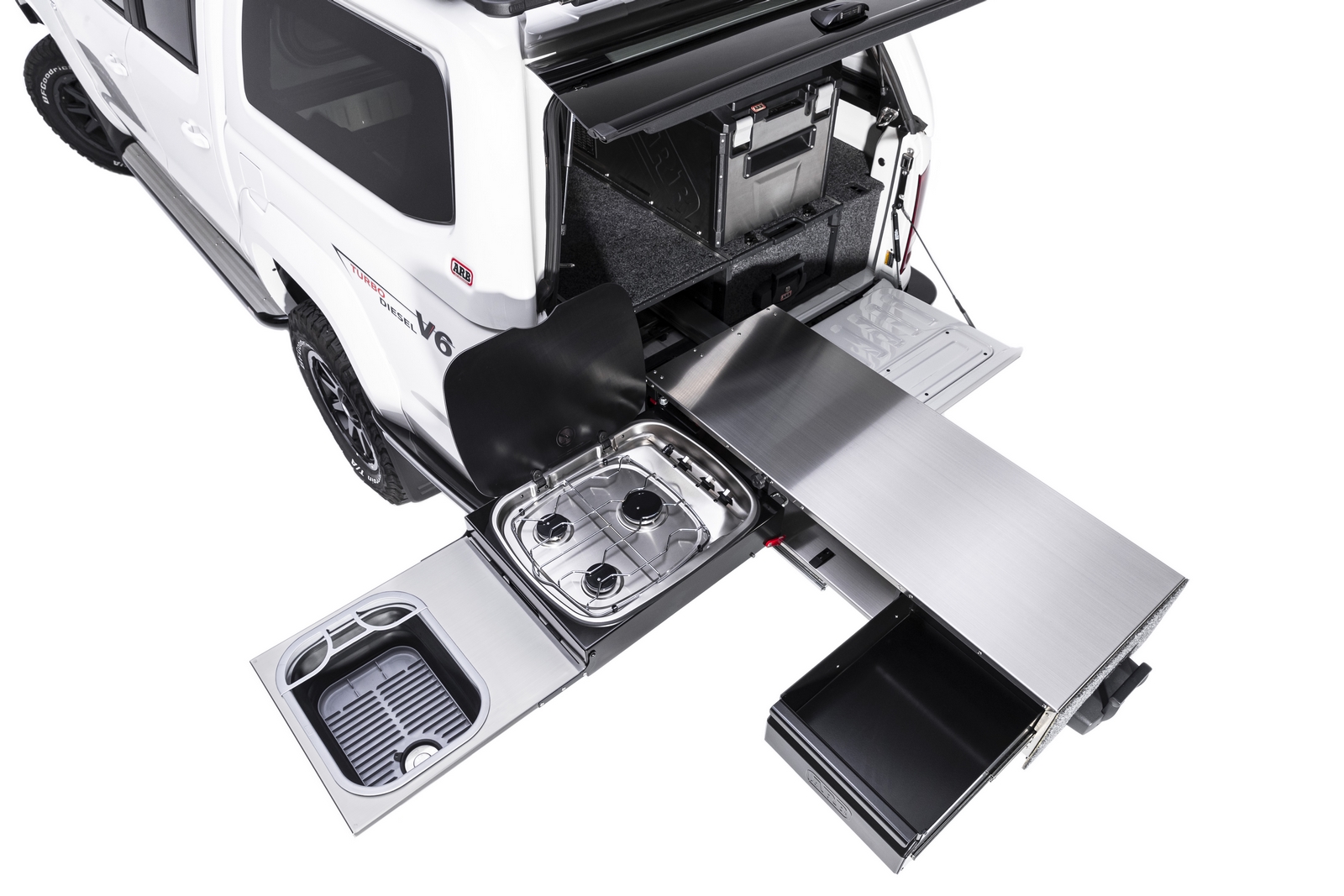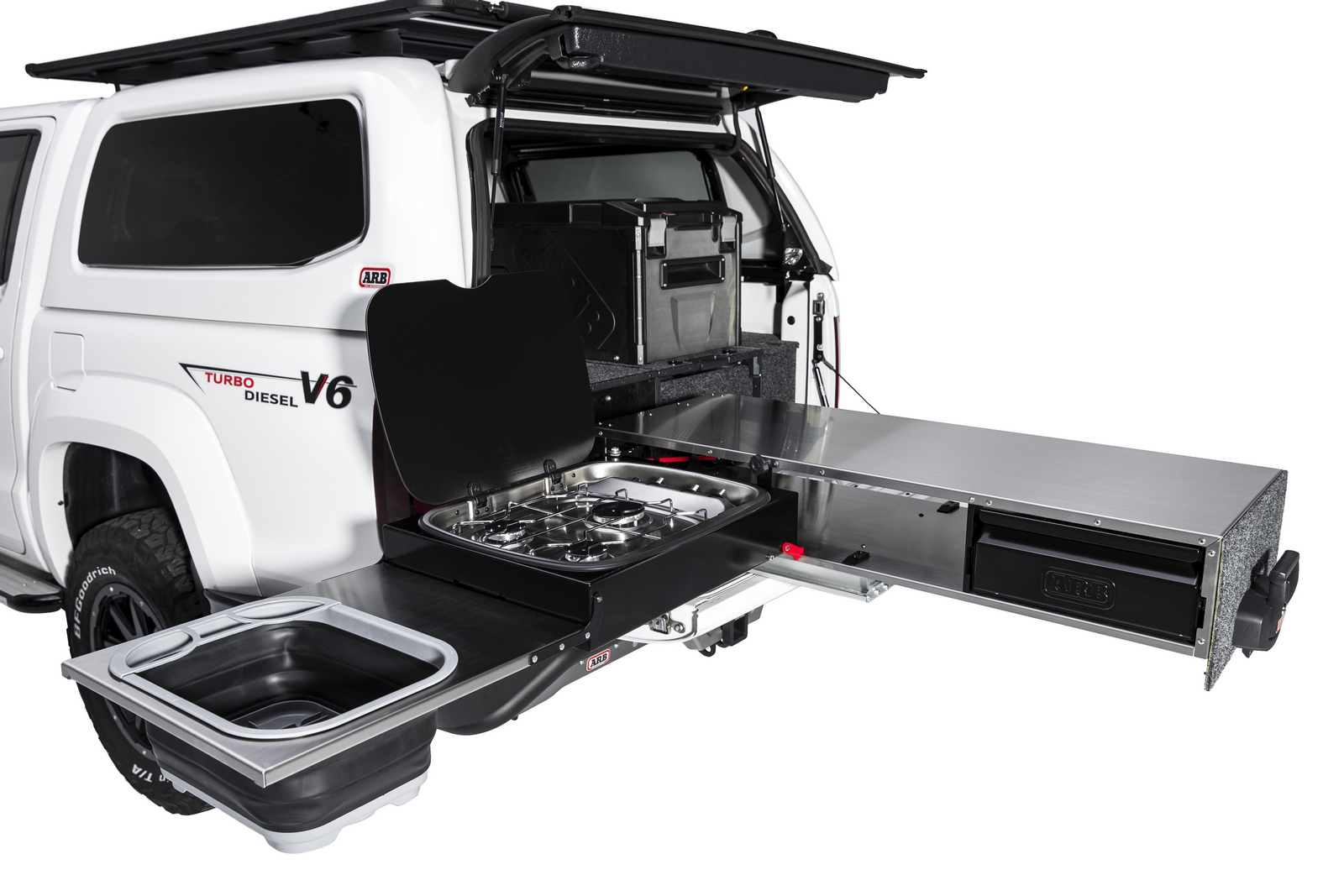 ARB Slide Kitchen - výsuvná kuchyně ARB je dokonalým doplněním nabídky zásuvkového systému ARB. Stačí pár vteřin a je možné si připravit oblibené jidlo na expedici, při práci prostě kdekoliv a kdykoliv.