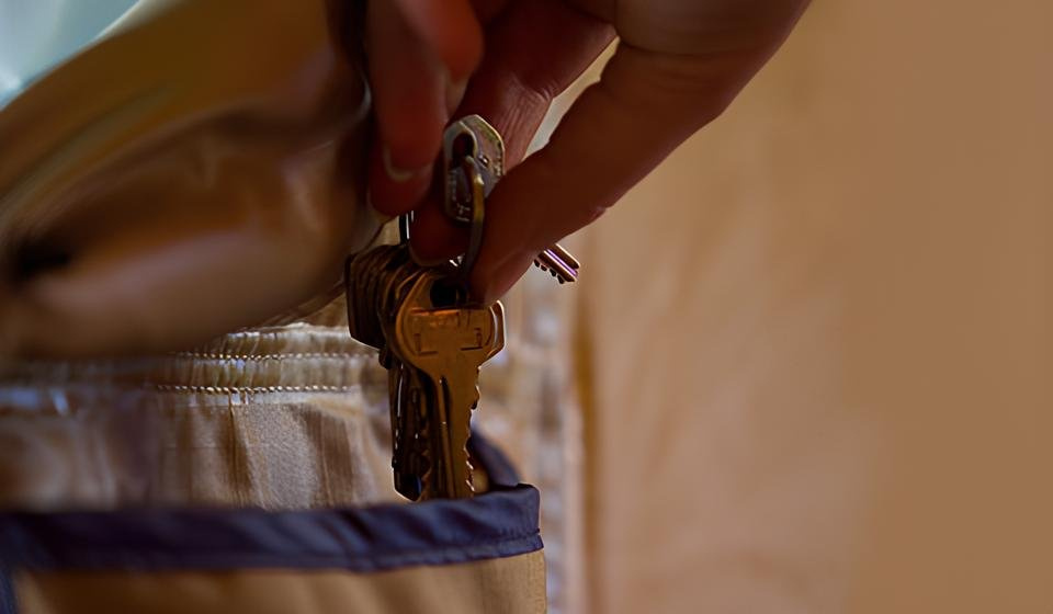 2. vysuneme žebřík ze stanu a zatáhneme směrem dolů k zemi
