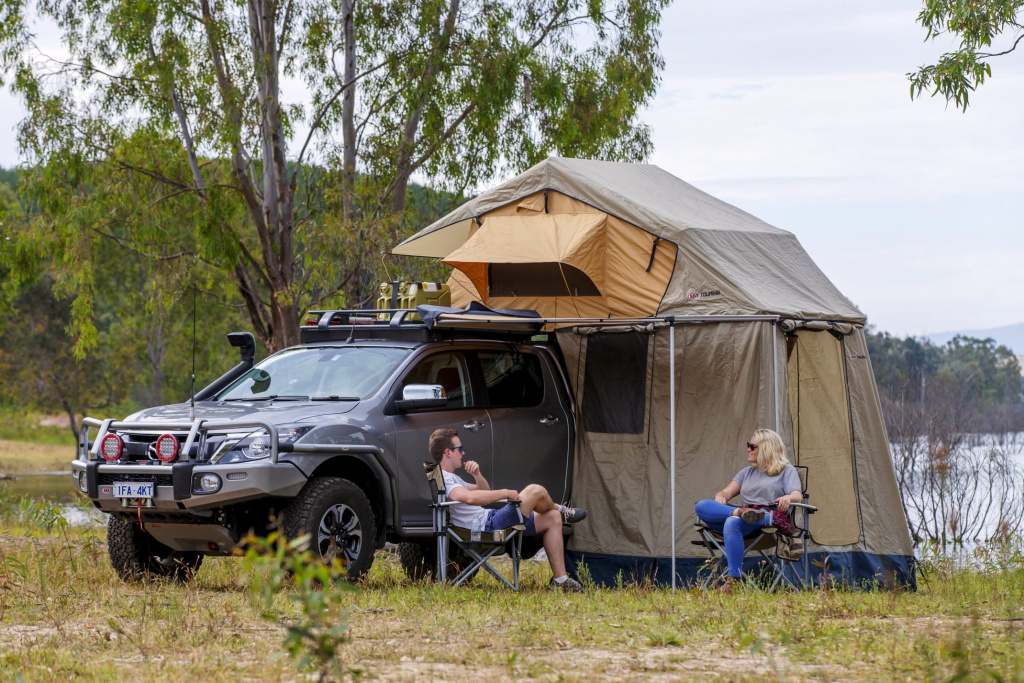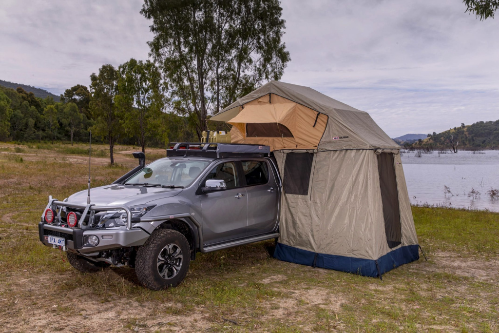 Nově je stan ARB Simpson III vybaven také 2 vyvýšenými kapsami pro boty a praktickým přístřeškem.