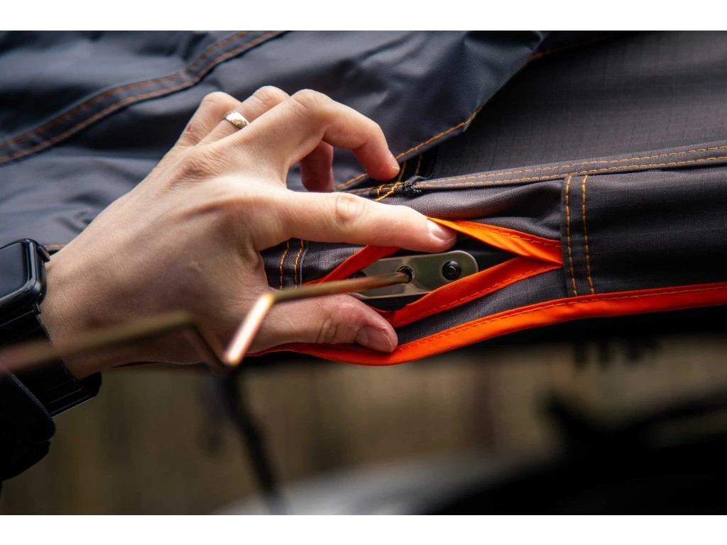 Na detailech nám opravdu záleží. Naše autostany sami aktivně používáme, a tak jsou vybaveny spoustou drobností, které vám dokážou usnadnit i takovou nepříjemnost, jako je kempování s tchýní. Například jsou to taháčky pro lepší manipulaci s jezdcem zipu. Dokud o tom nevíte, tak to nepotřebujete. Poté už si bez toho nedokážete představit život. Každý zip je navíc chráněný légou, která zabraňuje vniknutí vody. Dále u modelu Bjormutt XL ALU najdete přídavný systém s oky na zavěšení vašich nezbytností.