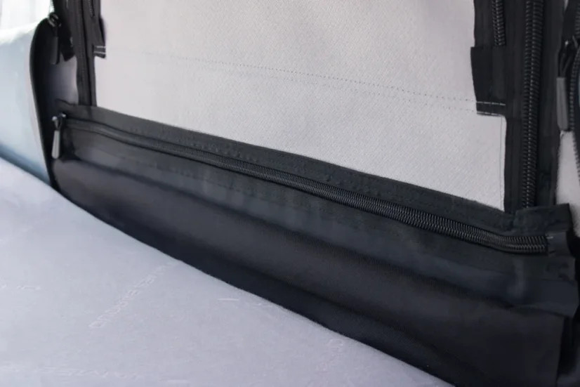 Vynikající ventilace: Díky svému napnutí umožňuje tkanina cirkulaci vzduchu, čímž minimalizuje kondenzaci a zároveň zcela odpuzuje vodu.