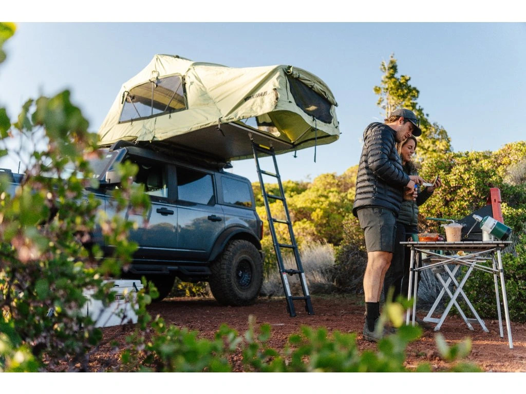 Samotný stan se postaví za méně než pět minut pomocí žebříku, který je součástí autostanu a pomáhá rozdělovat váhu spolu s příčníky na vozidle. Extra široké ergonomické šikmé schody jsou vhodné také pro bosé nohy.