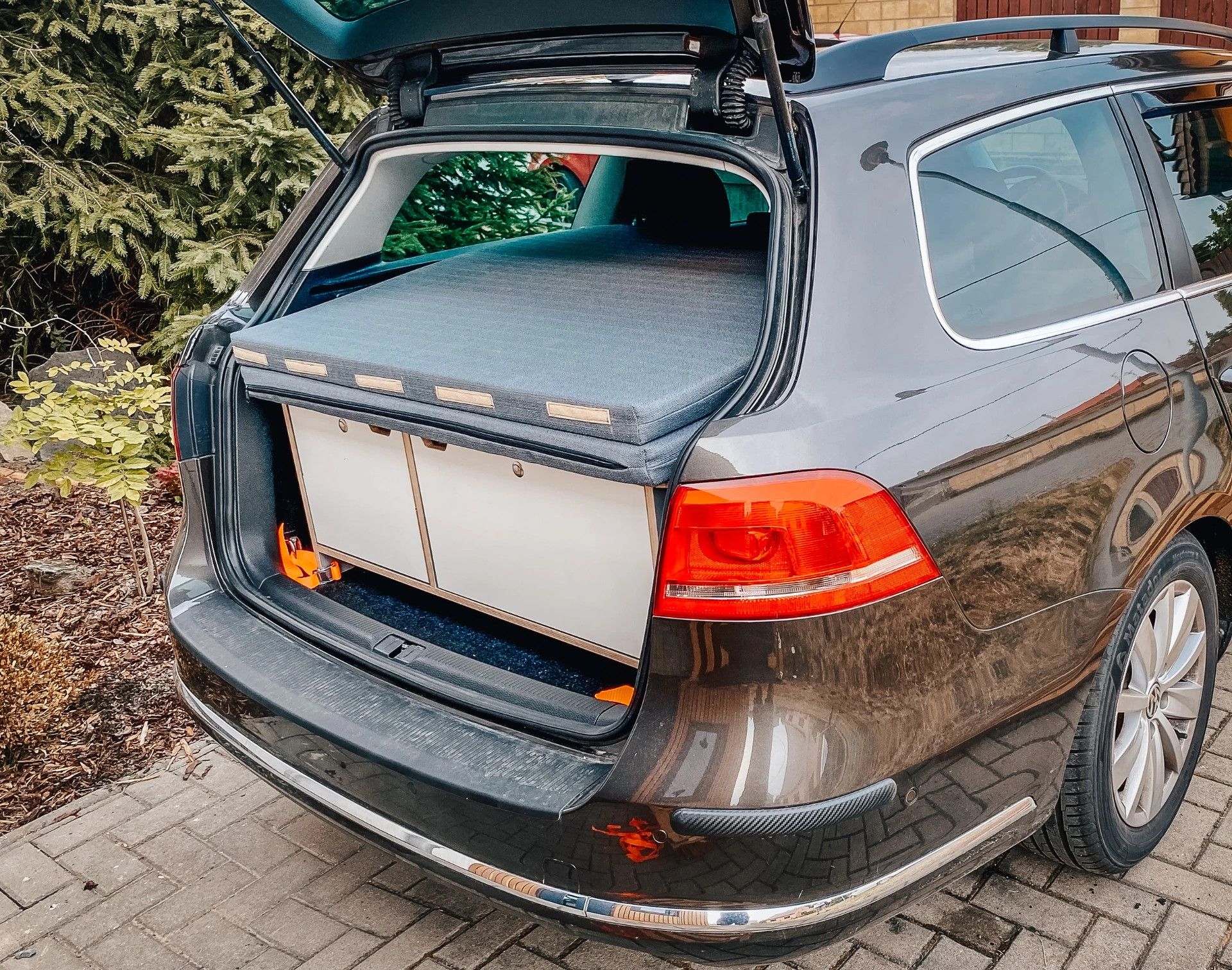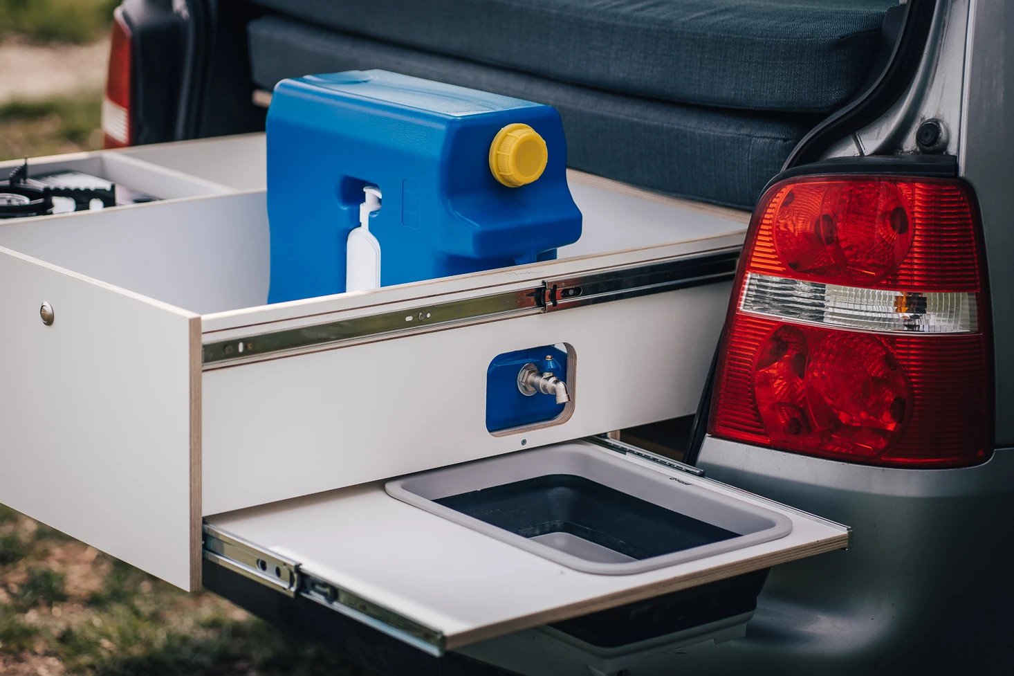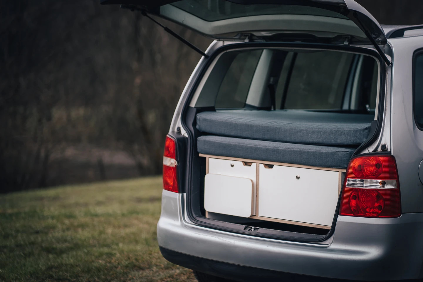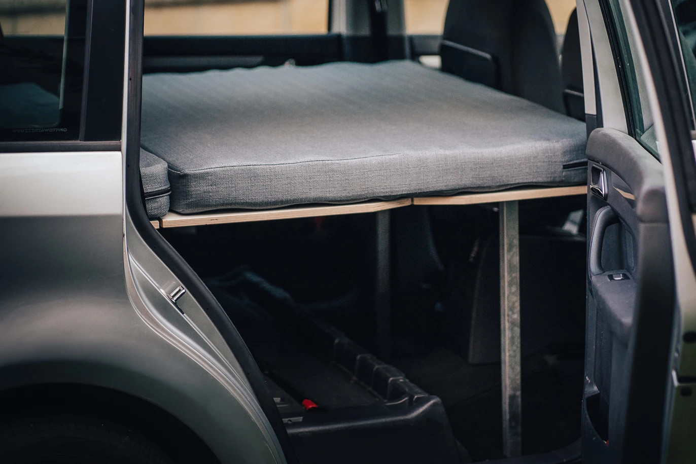 CAMPEESbox I přemění Váš automobil na nezávislé bydlení na kolech, po rozložení vznikne plnohodnotná postel, kempovací kuchyně s plynovým vařičem, dřezem a spousta odkládacích úložných prostorů pro Vaše vybavení na cesty.