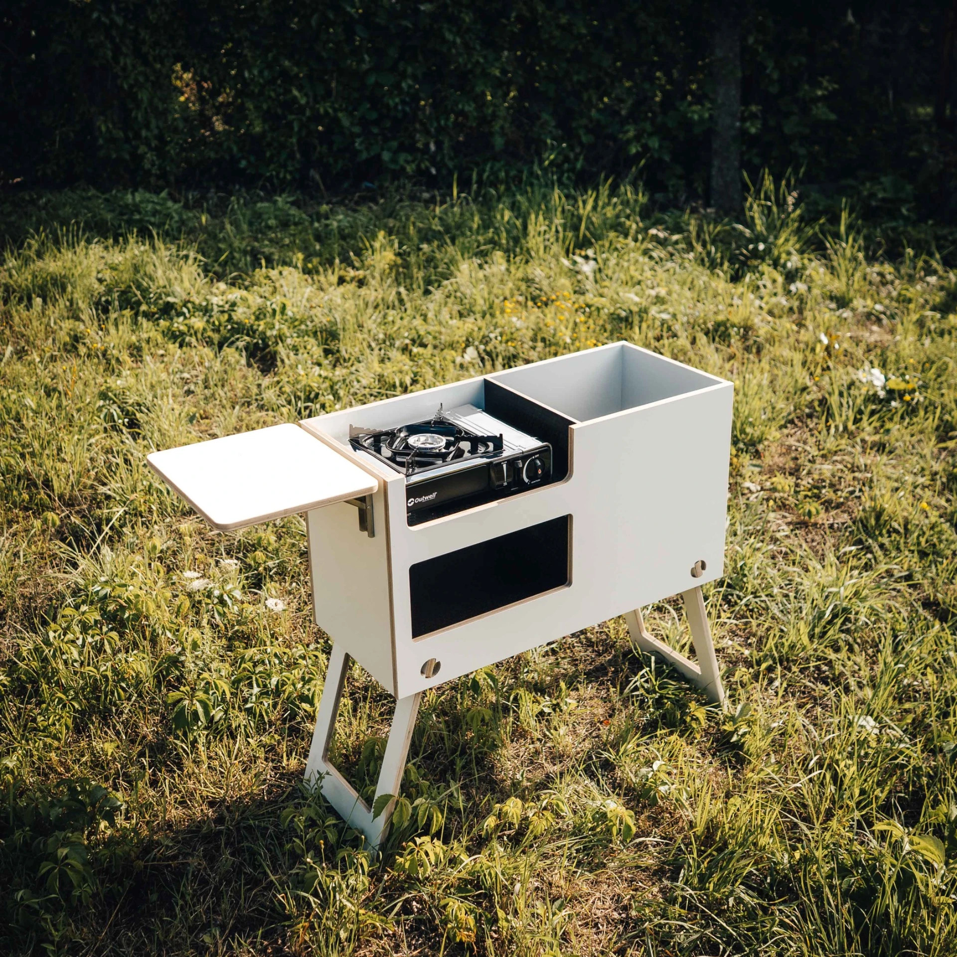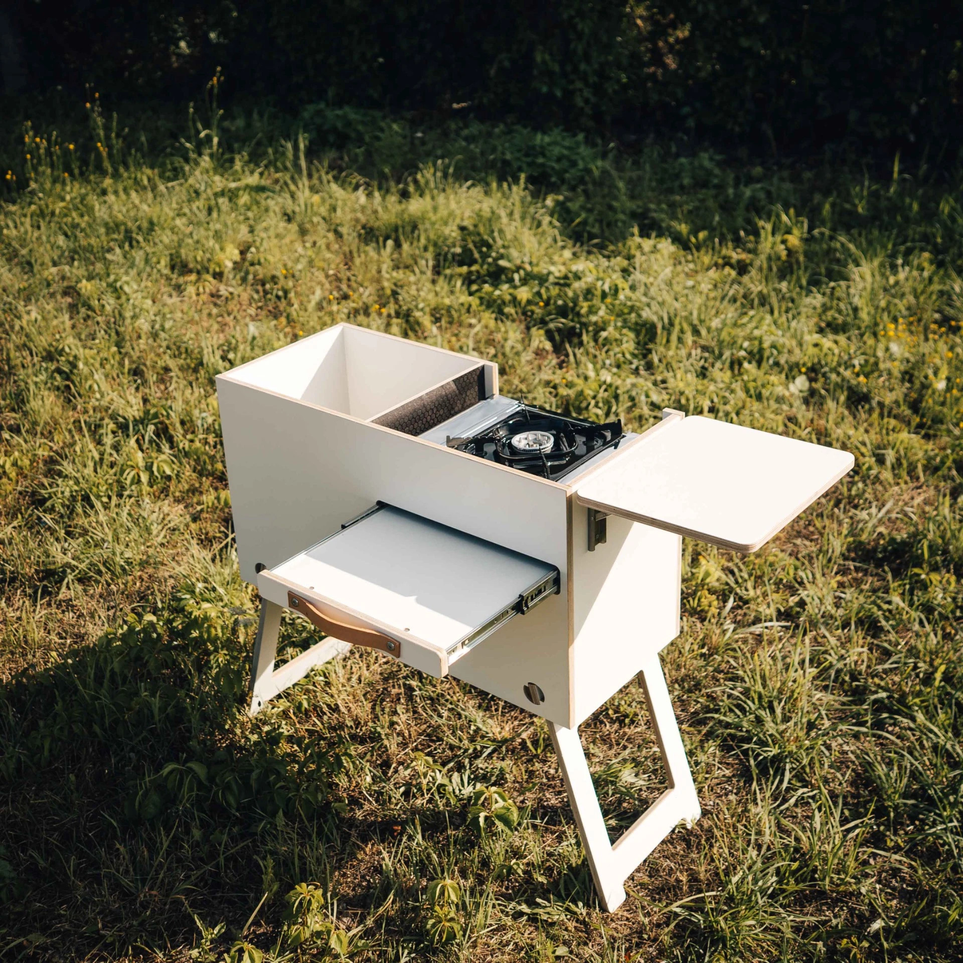 Je složen z postele, výsuvného podia a vyjímatelné kempingové kuchyňky s plynovým vařičem a úložným prostorem pro kempingové nádobí.