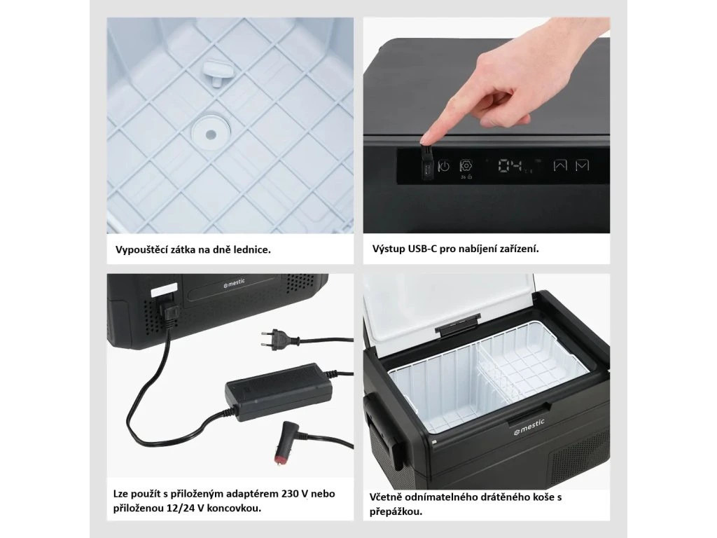 S modelem Mestic MCCM-35 můžete chladit i mrazit bez ohledu na to, jaké je venku horko. Jde o vlastní design značky Mestic v elegantním černém provedení. Díky výkonné kompresorové technologii poskytuje spolehlivý výkon, ať jste kdekoli. Chladničku lze připojit do zásuvky 12 V nebo 24 V pomocí přiložené autozástrčky, nebo do sítě 230 V pomocí adaptéru, který je rovněž součástí balení.