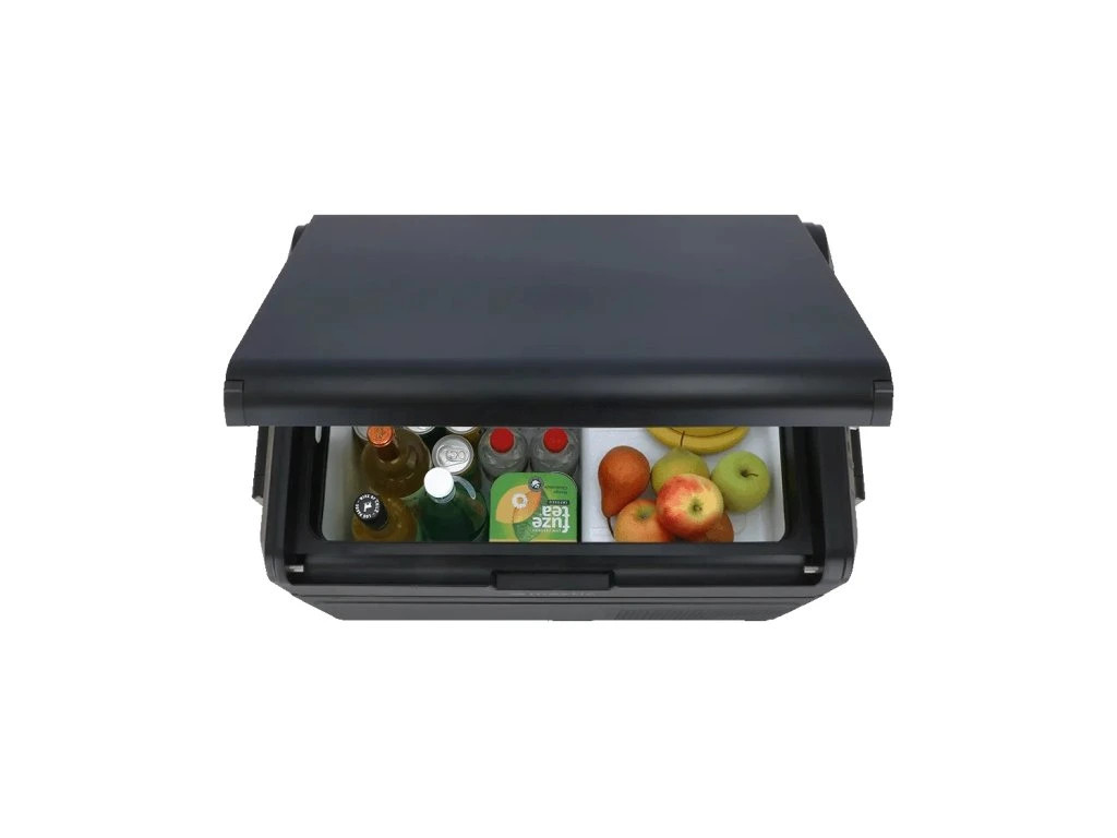 S kapacitou 35 litrů nabízí box dostatek prostoru i pro 1litrové láhve. Vnitřní LED osvětlení zajistí přehled i za tmy a vyjímatelný koš usnadňuje manipulaci s potravinami. Pokud plánujete dobrodružství mimo civilizaci, s doplňkovým akumulátorem Power Pack vydrží chladnička v provozu až 8 hodin bez zdroje energie.