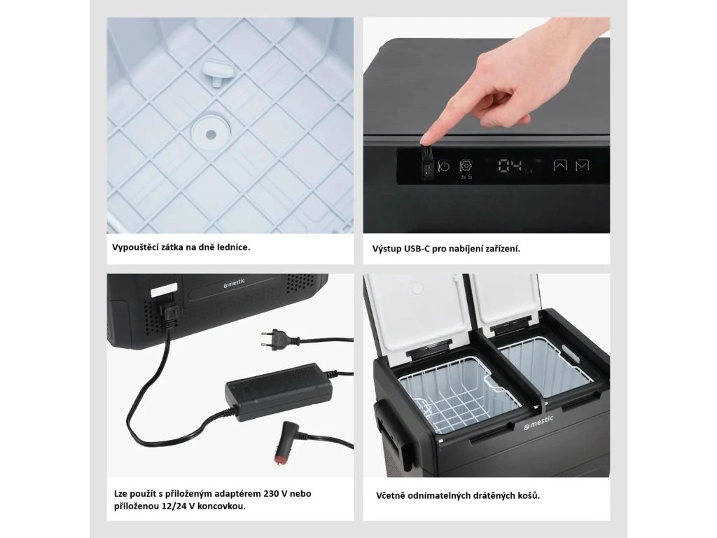S modelem MCCM-55 můžete chladit nebo mrazit bez ohledu na to, jaké panuje venkovní horko. Tato chladnička je vlastním designem značky Mestic v elegantním černém provedení a díky špičkovému kompresoru poskytuje maximálně spolehlivý výkon. Lze ji připojit do sítě 230 V (adaptér součástí) nebo do 12 V / 24 V zásuvky v autě. Součástí displeje je také praktický USB-C port, který využijete například pro nabíjení smartphonu.