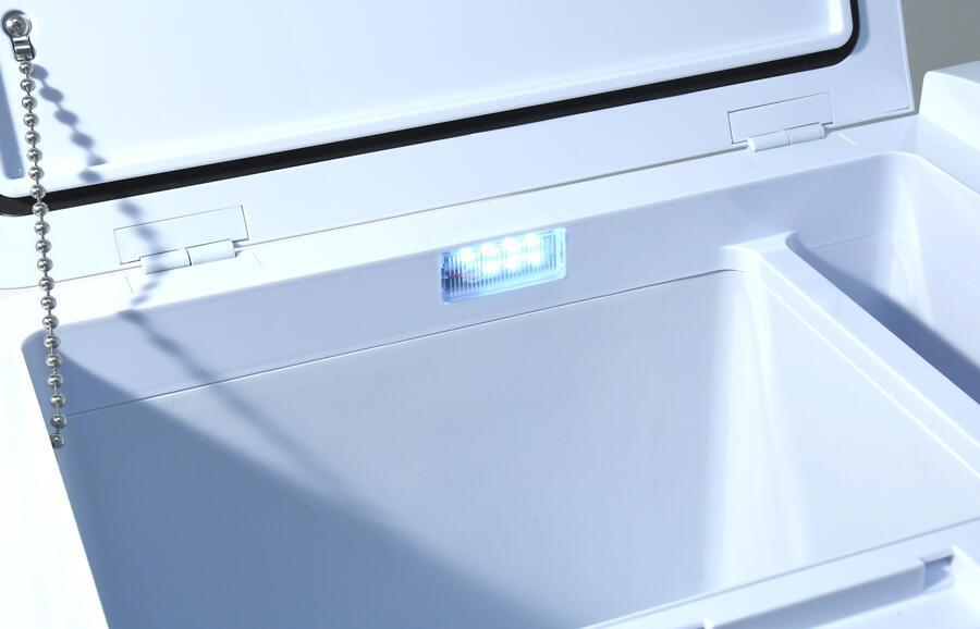 Chladicí box může být napájen z 12 V nebo 24 V zástrčky automobilů či lodí, nebo z běžné zásuvky 230 V. Je vybaven výkonným kompresorem s chladicím médiem a lze jej použít jak jako chladničku s teplotou 0 – 10°C, tak i jako mrazicí box s teplotou až -20°C.
