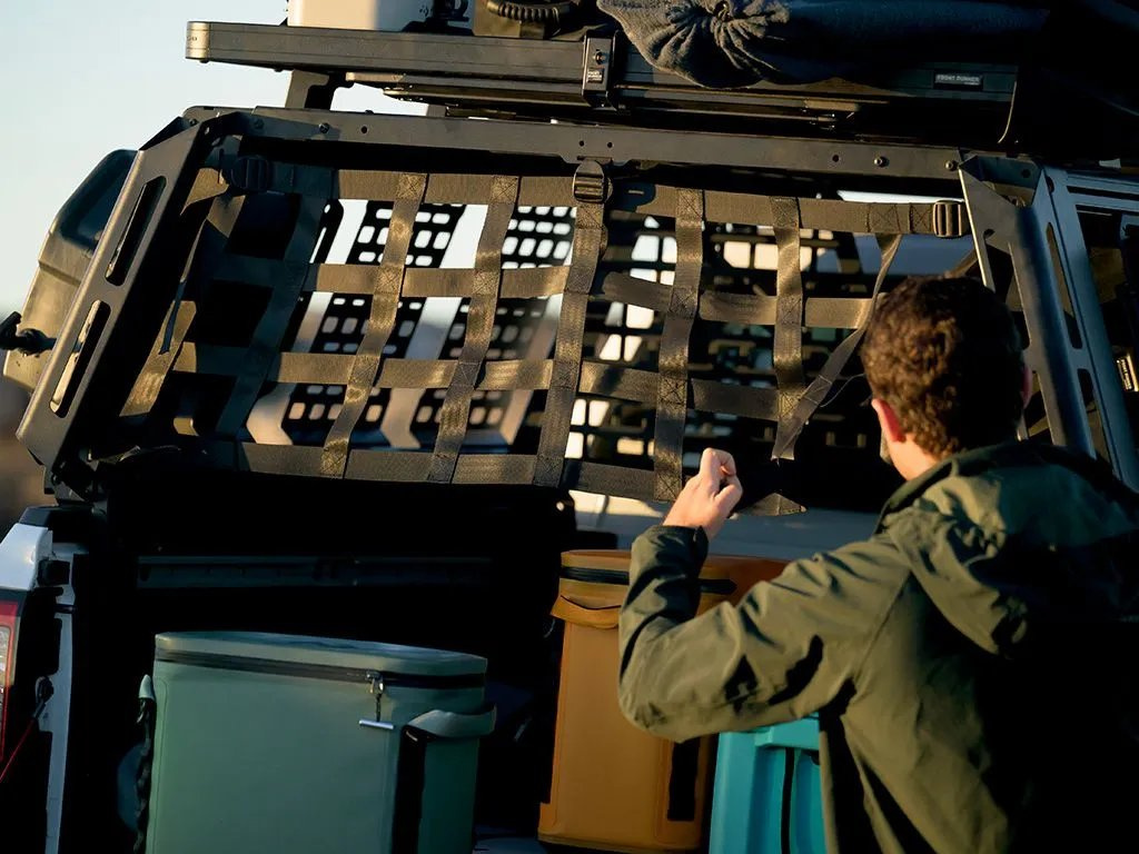 Snadno ji připevníte k integrovaným upevňovacím bodům na zadní straně systému Pro Bed nebo Pro Bed Rack na korbě. Síť je nastavitelná tak, aby bezpečně pasovala na všechny druhy systémů Pro Bed nosičů na korbu Pro Bed Rack.