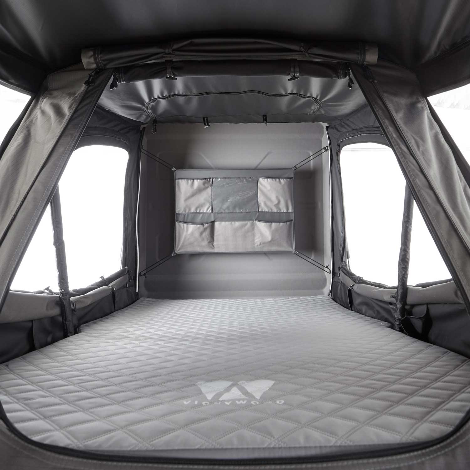 Uvnitř TEAK 135 zaujme pohodlnou nafukovací matrací, prodyšnou síťovanou podložkou a dvěma stmívateli teplými bílými LED pásky – pohodlně napájenými přes USB. Promyšlené doplňky, jako jsou velké kapsy na boty u vchodu, vestavěné úložné přihrádky a jemné moskytiéry na všechny otvory, které zajišťují pohodlný zážitek z kempování. Dalším výjimečným prvkem je překrývající se design oken, který se otevírá nahoru i dolů – pro maximální proudění vzduchu a panoramatický výhled.