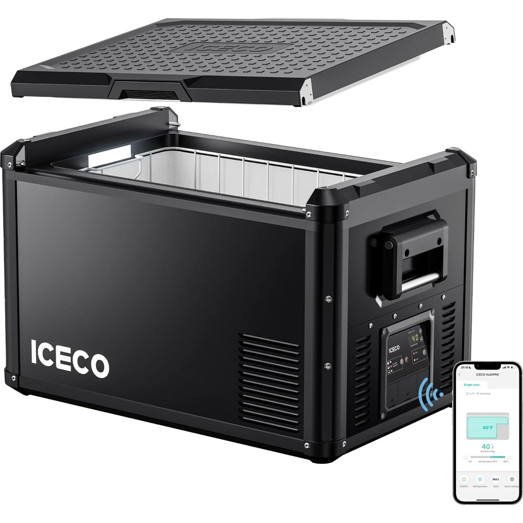 Špičková přenosná chladnička ICECO VL60PROS s výkonným kompresorem SECOP je ideální volbou pro cestování, kempování i každodenní použití. Nabízí velkou kapacitu 60 l, pokročilé chlazení od -20 °C do +20 °C, praktické ovládání přes mobilní aplikaci a odolnou konstrukci z nerezové oceli v elegantním černém provedení.