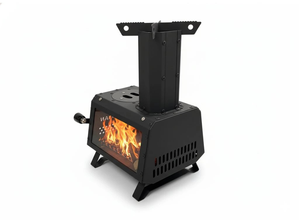Už na první pohled je jasné, že tady se s materiálem nešetřilo. Tělo kamen je vyrobeno ze silnostěnné oceli pospojované masivními nýty a šrouby. Celý povrch je ošetřen speciální matně černou žáruvzdornou barvou, která vydrží extrémní teploty. Tohle není žádný plecháček z tržnice, ale poctivý kus kovu, který s vámi přežije roky expedičního zacházení.