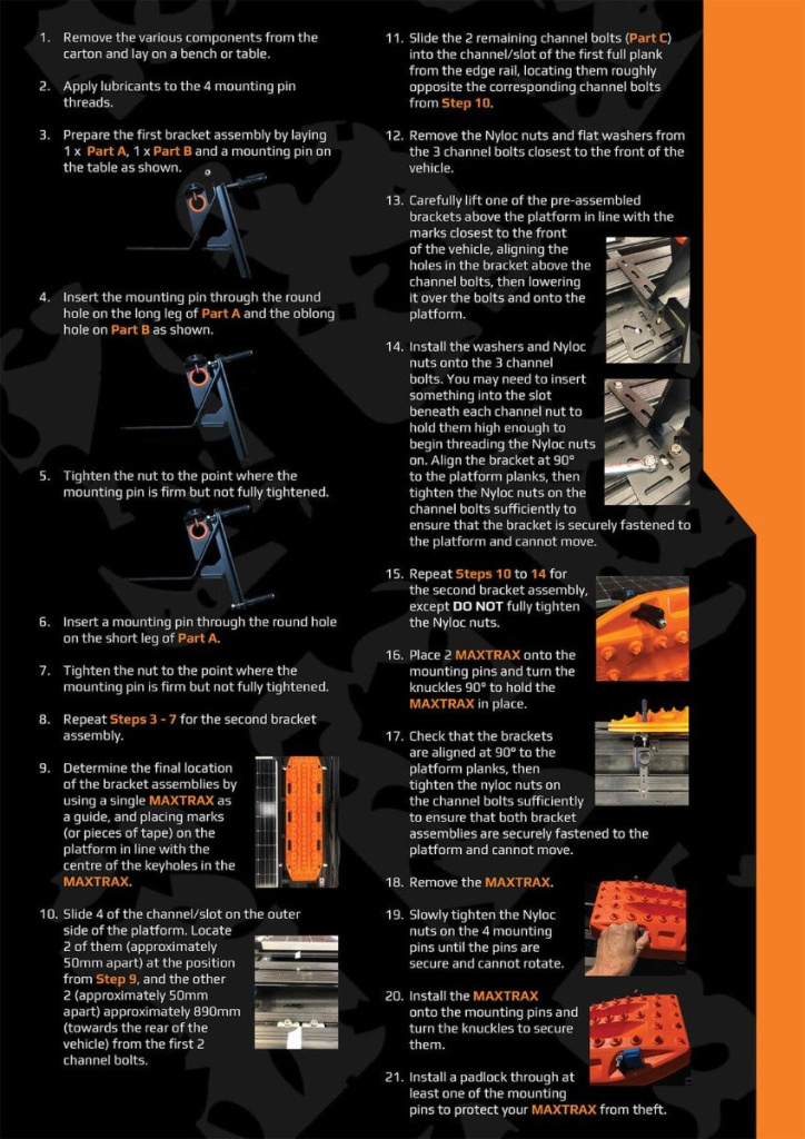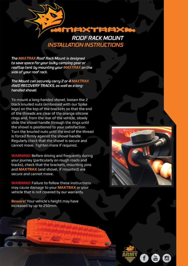 Držáky vyprošťovacích desek MAXTRAX MKII nebo MAXTRAX Extreme a lopaty (nejsou součástí).