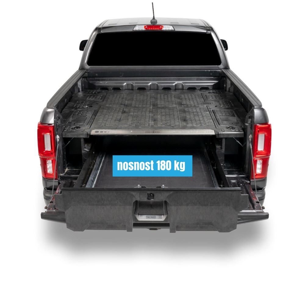 Díky 30% nárůstu úložného prostoru máte více místa pro vaše vybavení a nářadí, aniž byste museli obětovat cennou plochu v korbě.DECKED zásuvkový systém