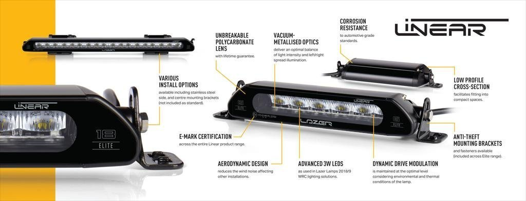 - 1 x LAZER Lamps přídavné světlo Linear-18 Elite Low Beam Assist (= automatickým nastavením potkávacích světel)