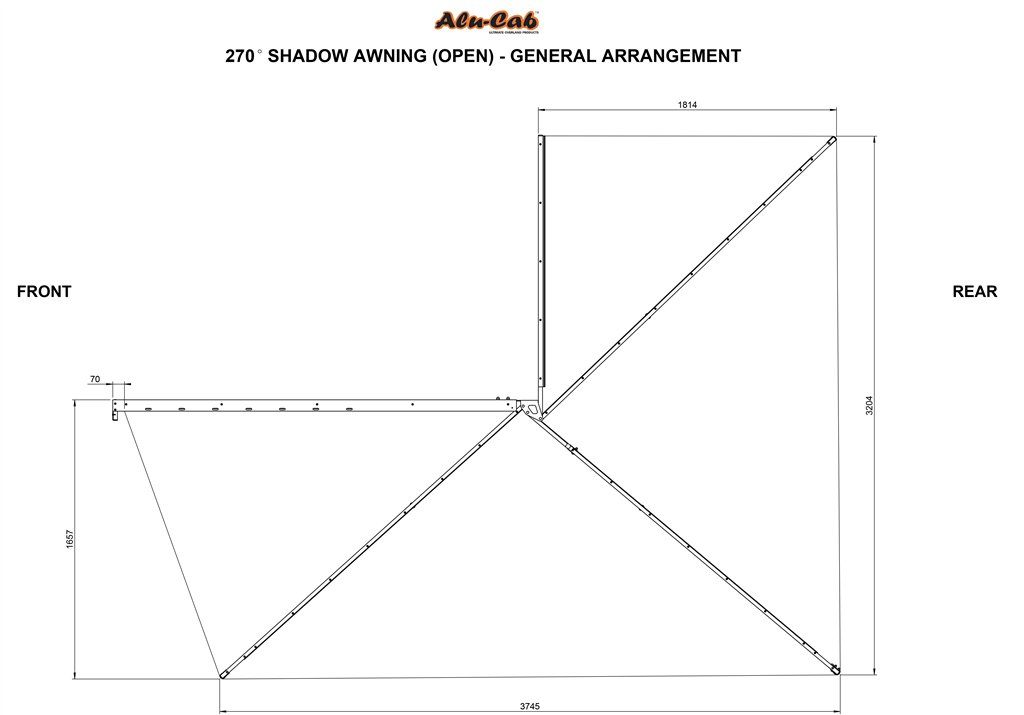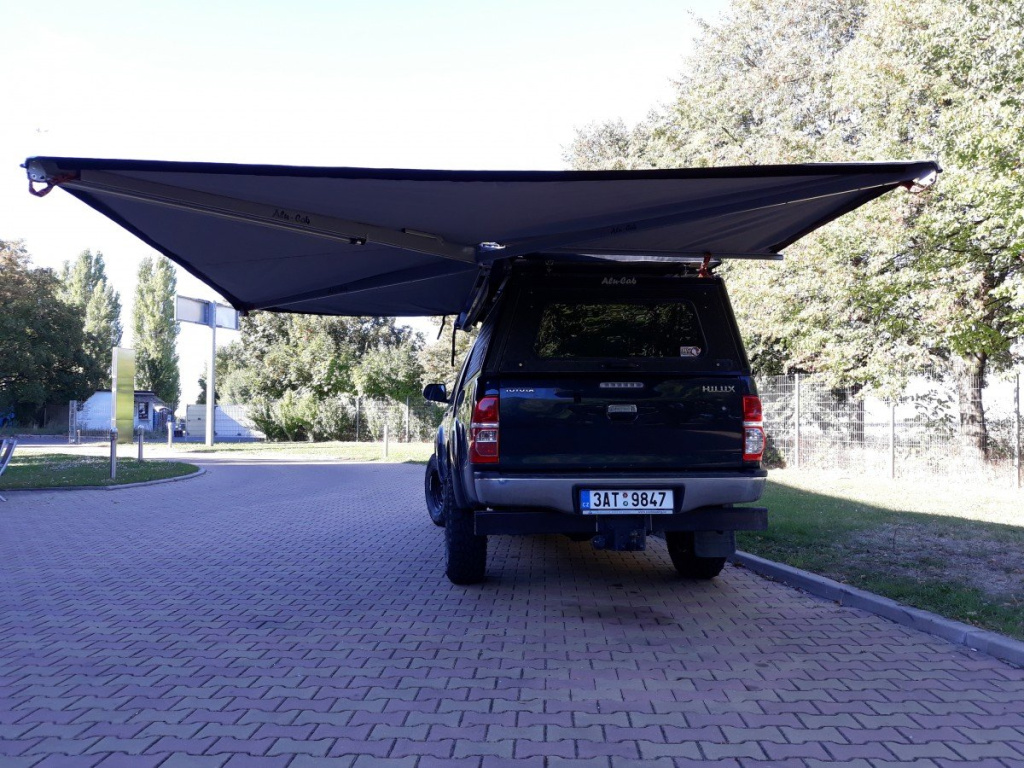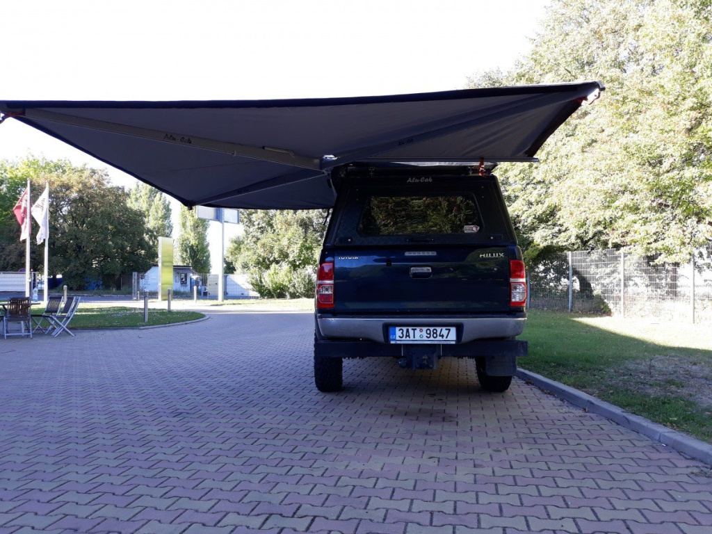 Pro otevření markýzy o rozměrech 270 stupňů je třeba otevřít pouze zip transportního pouzdra, poté se markýza stáhne kolem vozidla a připevní se k zadnímu držáku. Aby se tkanina dala trochu většího napětí a umožnila snadnější vypuštění deště, krátká opěrná tyč je složena na středovém kloubovém rameni. S malou praxí, tohle, stejně jako ukládání, jde za méně než minutu. Značka Alu-Cab 270 stupňů obvykle nevyžaduje žádnou oporu na zemi. Když je vítr silný, může být markýza podepřena na podlaze s ramenem připevněným na kloubové rameno a poté napnutou. Popruhy pro napínání jsou zachyceny v kloubových ramenech. Za účelem opětovného uložení markýzy je třeba sklopit pouze středovou opěrku, uchopovací popruh se musí uvolnit v zadní části vozidla a markýza se musí skládat. Poté je plachta navinuta, obložena suchými zipy na rámu a zip na přepravní objímce je zavřený.