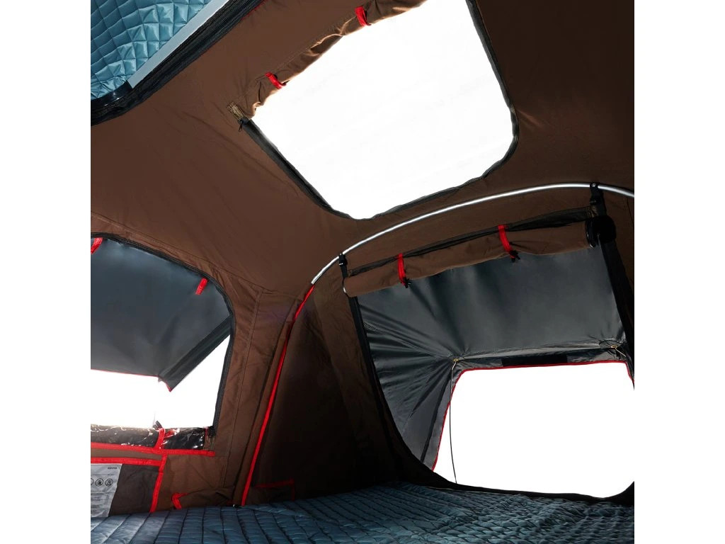 Podlaha SKY4X je vyrobena z vysoce odolných plástvových panelů hliníku, které jsou lehké a zároveň dostatečně silné, aby unesly až 2 tuny. Díky tomu si můžete dopřát pohodlný spánek v jakémkoliv terénu.