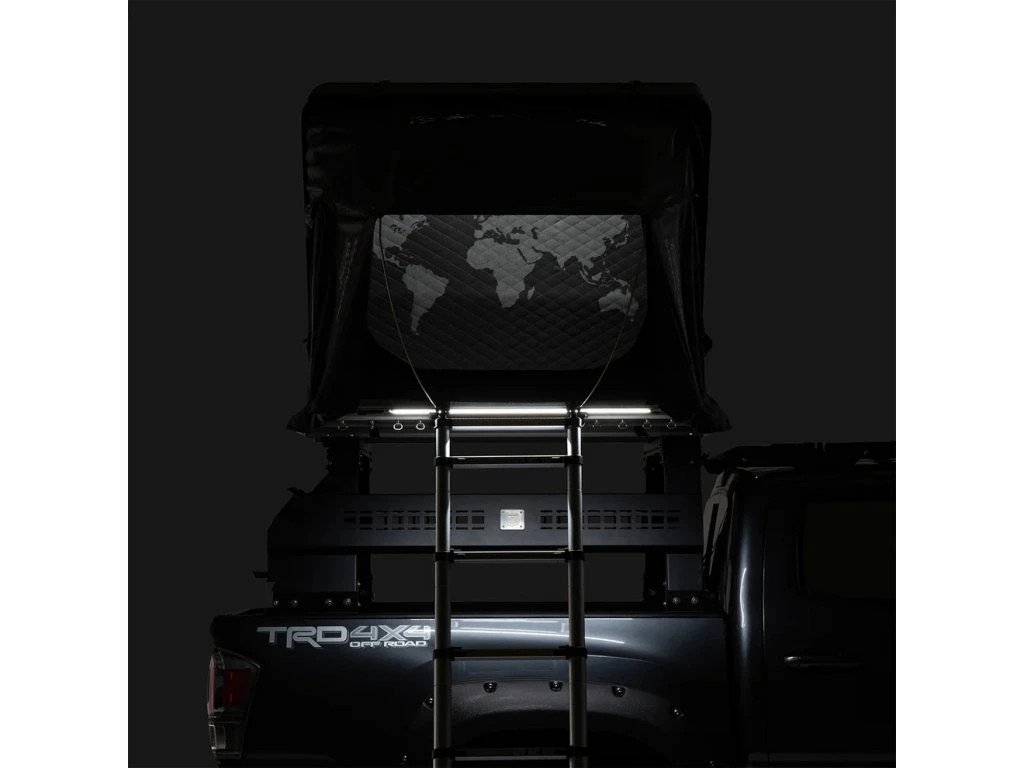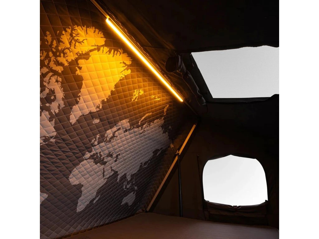 Integrované dvoubarevné LED světelné pásy napájené přes USB osvětlují vnitřek stanu a spodní stranu rozkládací podlahy. Nezávislé, stmívatelné ovládací prvky. * Napájecí zdroj USB není součástí dodávky.