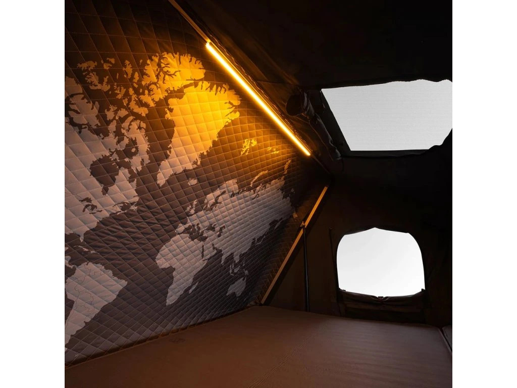 Sušší, teplejší, tišší Podlaha z přírodního korku jako řešení ochrany před kondenzací, skvělá tepelná izolace a vynikající odhlučnění. Světlo ve dne i v noci Integrované dvoubarevné LED světelné pásy napájené přes USB osvětlují vnitřek stanu a spodní stranu rozkládací podlahy. Nezávislé, stmívatelné ovládací prvky. * Napájecí zdroj USB není součástí dodávky. Spaní jako v bavlnce Luxusní 10 cm samonafukovací matrace dodává prvotřídní teplo a a dokonalou podporu Vašemu tělu. Rychlé a snadné vyfouknutí šetří místo ve skořepině stanu pro uložení lůžkovin. Součástí balení je i nafukovací/vypouštěcí pumpa AirDown™. SKYCAMP 3.0 DLX