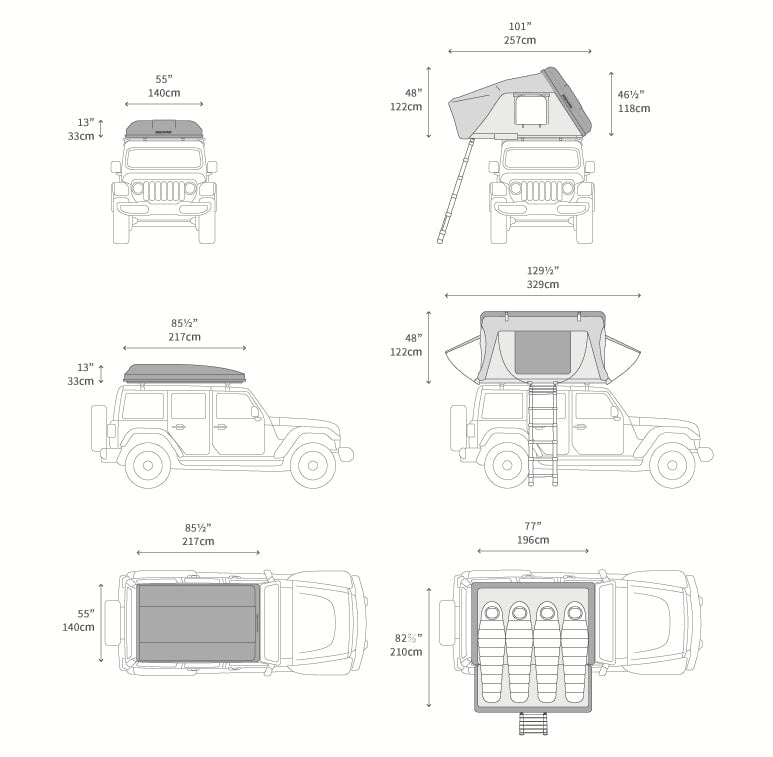 Najděte si své vysněné místo, zaparkujte a během minuty je Skycamp rozložený. Na cesty s rodinou Skycamp 3.0 svou velikostí dovoluje přenocovat dvěma dospělým a dvěma dětem. Bez problémů se do něj vejdou i tři dospělí anebo můžete jet jen ve dvou a královsky se ve stanu rozvalovat při pozorování hvězd.