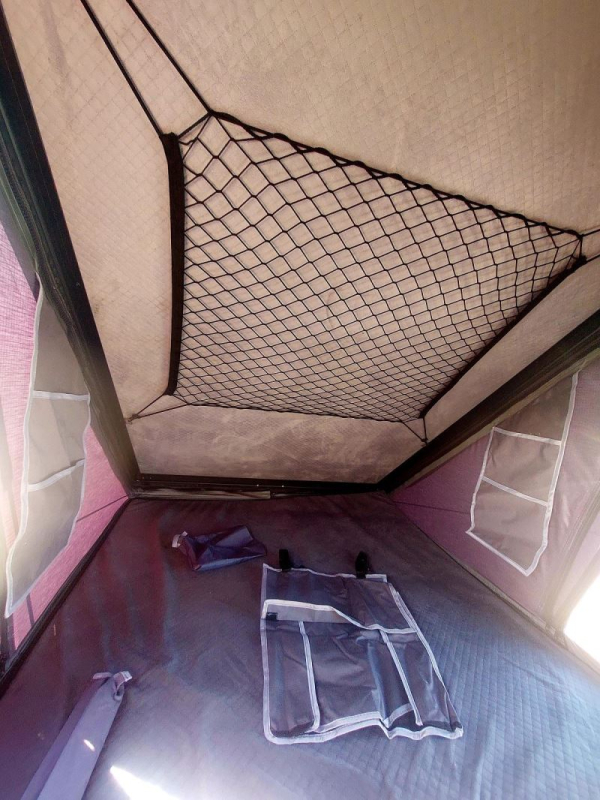Špičkový hliníkový střešní autostan pro dvě osoby se zcela uzavíratelnými okny.Okna jsou nepromokavá, rolovací, vybavena moskytiérou.. Na obou vnitřních stranách jsou kapsy pro obuv či oblečení, rovněž z venku je kapsa na obuv. Součástí dodávky je i žebřík. Stan se dá uzamknout klíčem, součástí jsou 2 klíče. Zvedací pístnice jsou po složení uvnitř stanu. Výhodou stanu je extra plochá konsrukce s rovnou horní plochou, umožňující jednoduchou instalaci solárního panelu.